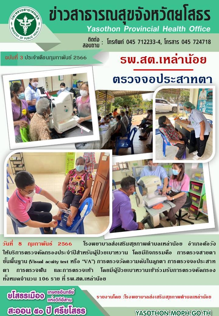เมื่อวันที่ 20 กุมภาพันธ์ 2566 ที่ผ่านมา โรงพยาบาลส่งเสริมสุขภาพตำบลเหล่าน้อย...