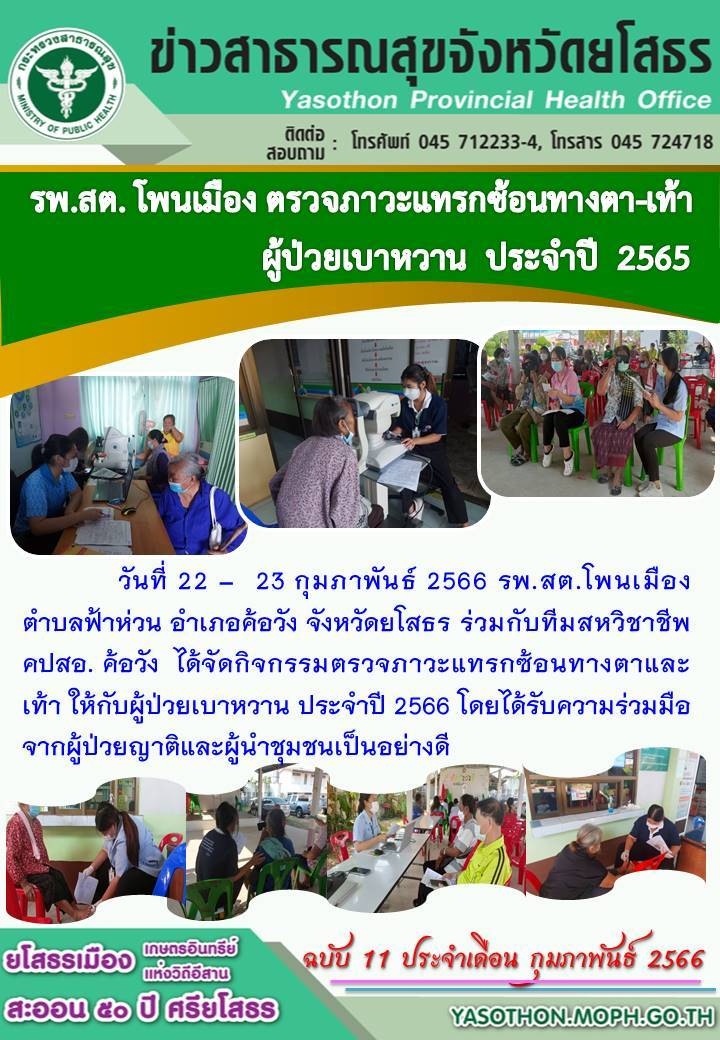 เมื่อวันที่ 22-23 กุมภาพันธ์ 2566 ที่ผ่านมา โรงพยาบาลส่งเสริมสุขภาพตำบลโพนเมือง ตำบลฟ้าห่วน...