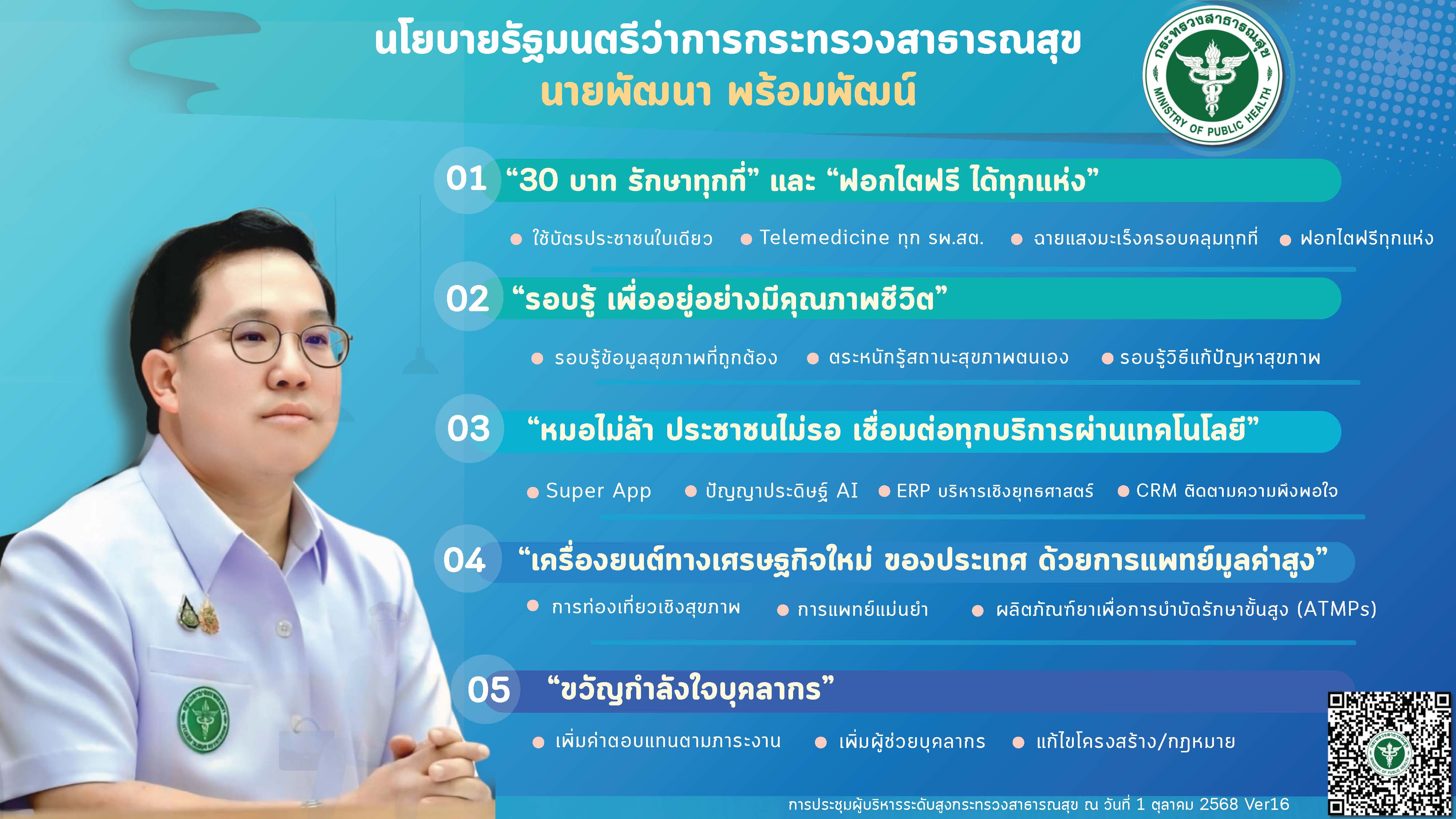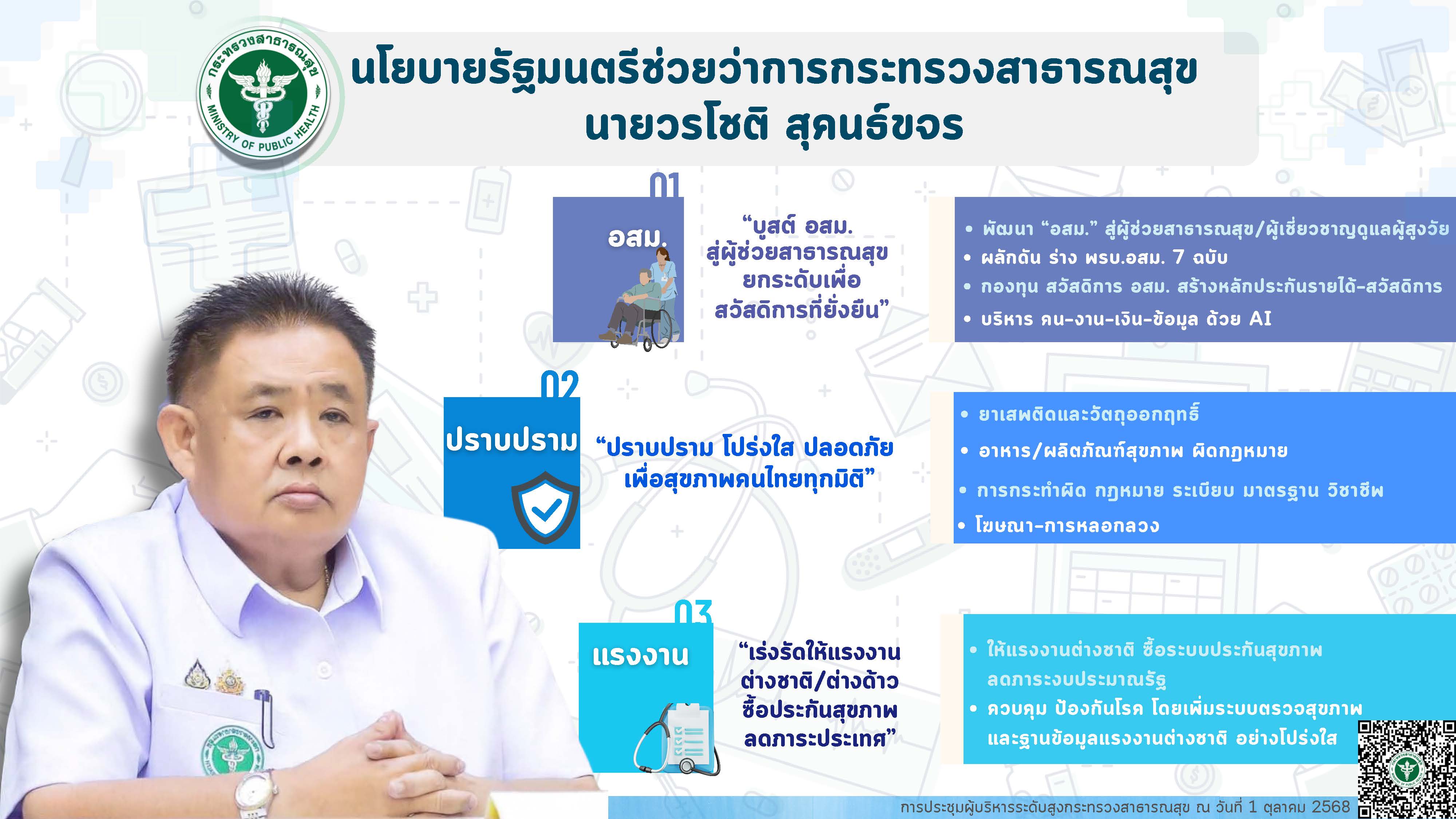 6. ปฏิบัติงานตามนโยบายเร่งด่วนด้านสุขภาพของรัฐบาล กระทรวง เขตสุขภาพและจังหวัด